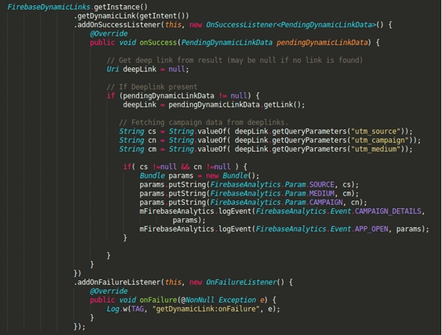 Note: Firebase will automatically track campaigns from a variety of acquisition sources, as listed here.